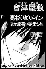 去年、やっぱり歴史やるー!といっきなり一念発起したイキオイだけで、右も左もわからずダイブした歴史同人界でしたが、始めてよかった。思えば長州ファン歴だけは長かったけど、高杉、高杉と実際に口に出した年間回数は過去最高かと(笑)今まで本当にひっそりこっそりだったからなー。描けることが何より嬉しい。それは読んでもらえるからであって、この感謝は言い尽くせないです。ビクついてた慶喜×容保も、少しずつ同志に出会うことができて本当に嬉しい。冬コミに限らず、去年一年、會津屋敷に関わって下さったすべての皆様に感謝です!今年もどうぞ宜しくです。